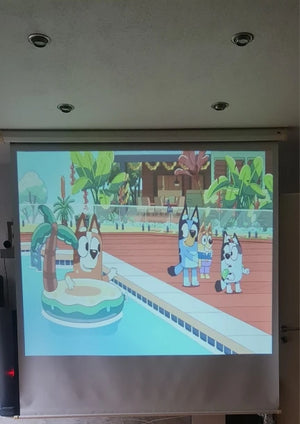 With about 2000 lumens brightness it produces a vivid image in dim to moderately lit rooms, making 80–120 inch screens suitable for movie nights.